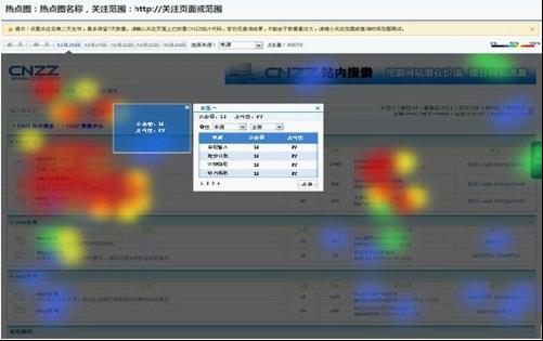 CNZZ推出的“熱點圖”功能,通過不同顏色區(qū)分不同區(qū)域的點擊熱度,可以更加直觀地展現(xiàn)訪客興趣,高效追蹤訪客來源,從而多維度分析各種特征的訪客點擊情況。
