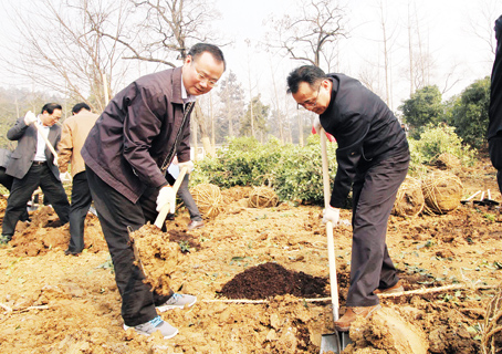 上午10時(shí)許,一到植樹(shù)現(xiàn)場(chǎng),周春雨、白金明、何金良、顧世平、方志宏等市幾大班子領(lǐng)導(dǎo)就迅速融入到植樹(shù)勞動(dòng)的大軍之中。他們興致勃勃地拿起鐵鍬,同在場(chǎng)的干部一起揮鍬挖土,將一棵棵樹(shù)苗植入樹(shù)坑,培土,澆灌,每道工序都做得十分認(rèn)真。市委書記周春雨、市長(zhǎng)白金明一邊植樹(shù),一邊與市林業(yè)局、住建委負(fù)責(zé)同志交談,了解全市植樹(shù)造林及“綠滿珠城”工作開(kāi)展情況。經(jīng)過(guò)一番緊張勞動(dòng),300多棵桂花、櫻花等樹(shù)木昂然挺立,在和煦的春光中綻放蓬勃生機(jī)。